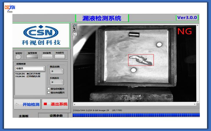 干電池在生產過程中會有電解液泄漏,其污漬流到托盤紙上,會污染其他的電池。電解液漏液影響整個批次產品的安全,降低電容量,嚴重影響產品的品質。本系統根據檢測運送盒底部的紙張上是否有漏的痕跡從而判斷電解液是否泄漏,而實際生產中會有部分電池遺留在盒子里,這就要避免把電池當做漏液,減少誤判和停機,這就給檢測帶來了很大難度。本系統不但要檢測出漏液,還要分辨出是否是遺留電池,分辨能力強,準確度高。