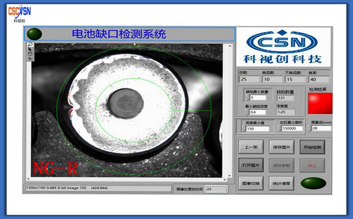 本系統(tǒng)用于檢測(cè)干電池正極口部變形檢測(cè)。干電池在生產(chǎn)中,不可避免的會(huì)出現(xiàn)擠壓、碰撞的情況,從而導(dǎo)致干電池正極的口部變形,進(jìn)而影響正極蓋片裝配不進(jìn)去,產(chǎn)出不良品。本系統(tǒng)在產(chǎn)線(xiàn)上連續(xù)運(yùn)行,動(dòng)態(tài)采圖,快速計(jì)算,及時(shí)排除不良品。